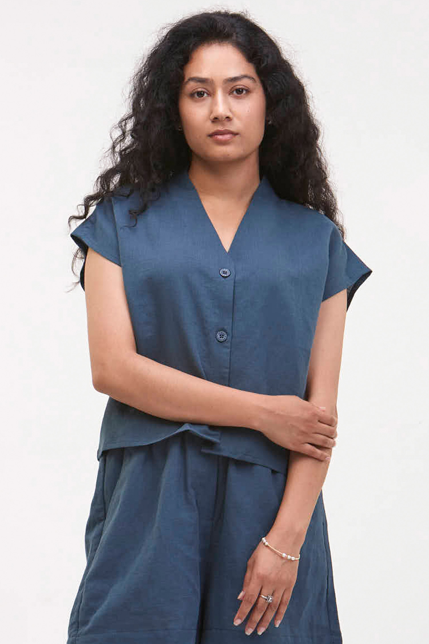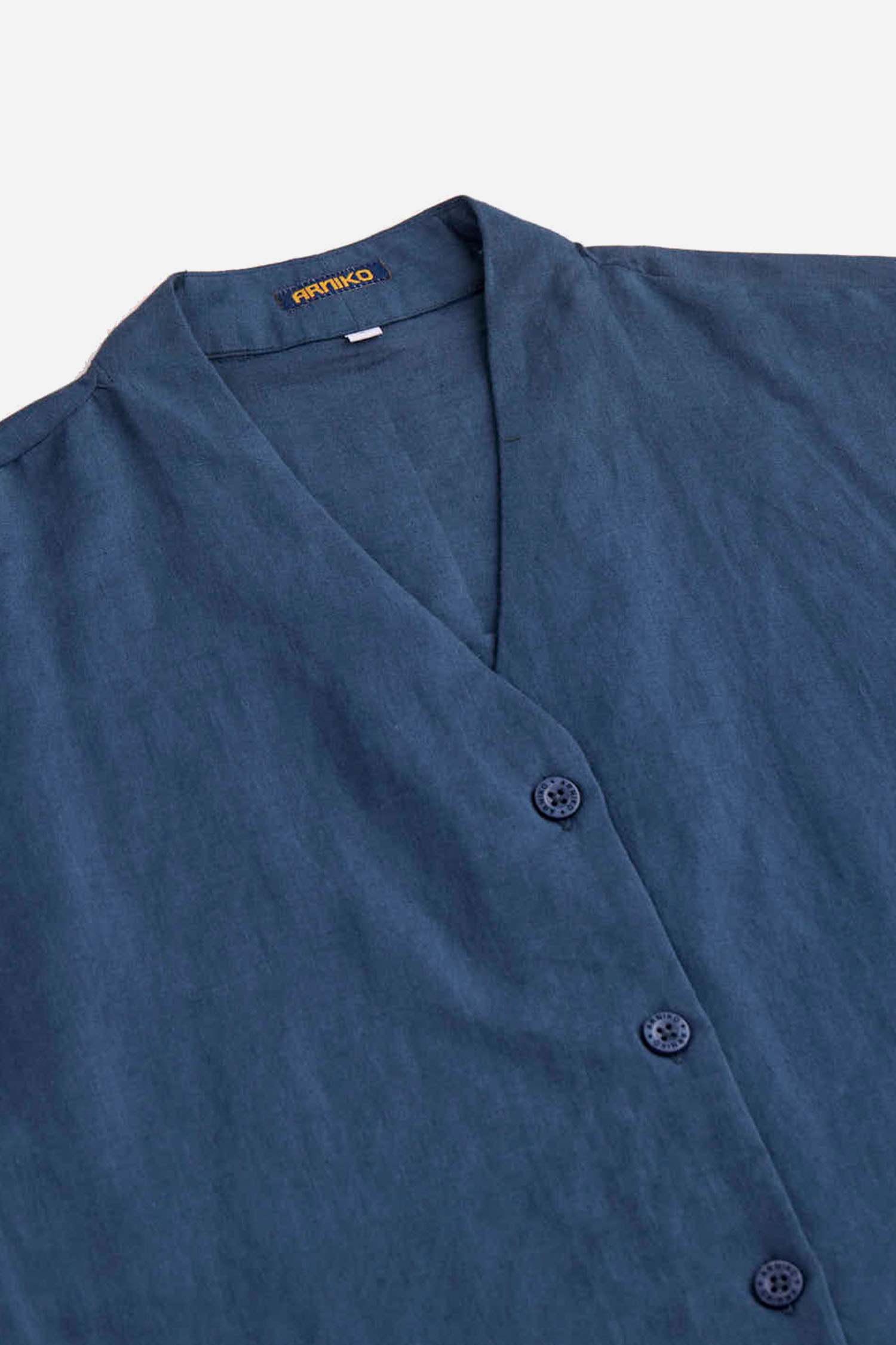 Das Nuru Leinen Shirt aus einer Leinen-Baumwollmischung hat eine Knopfleiste und überschnittene Ärmel.