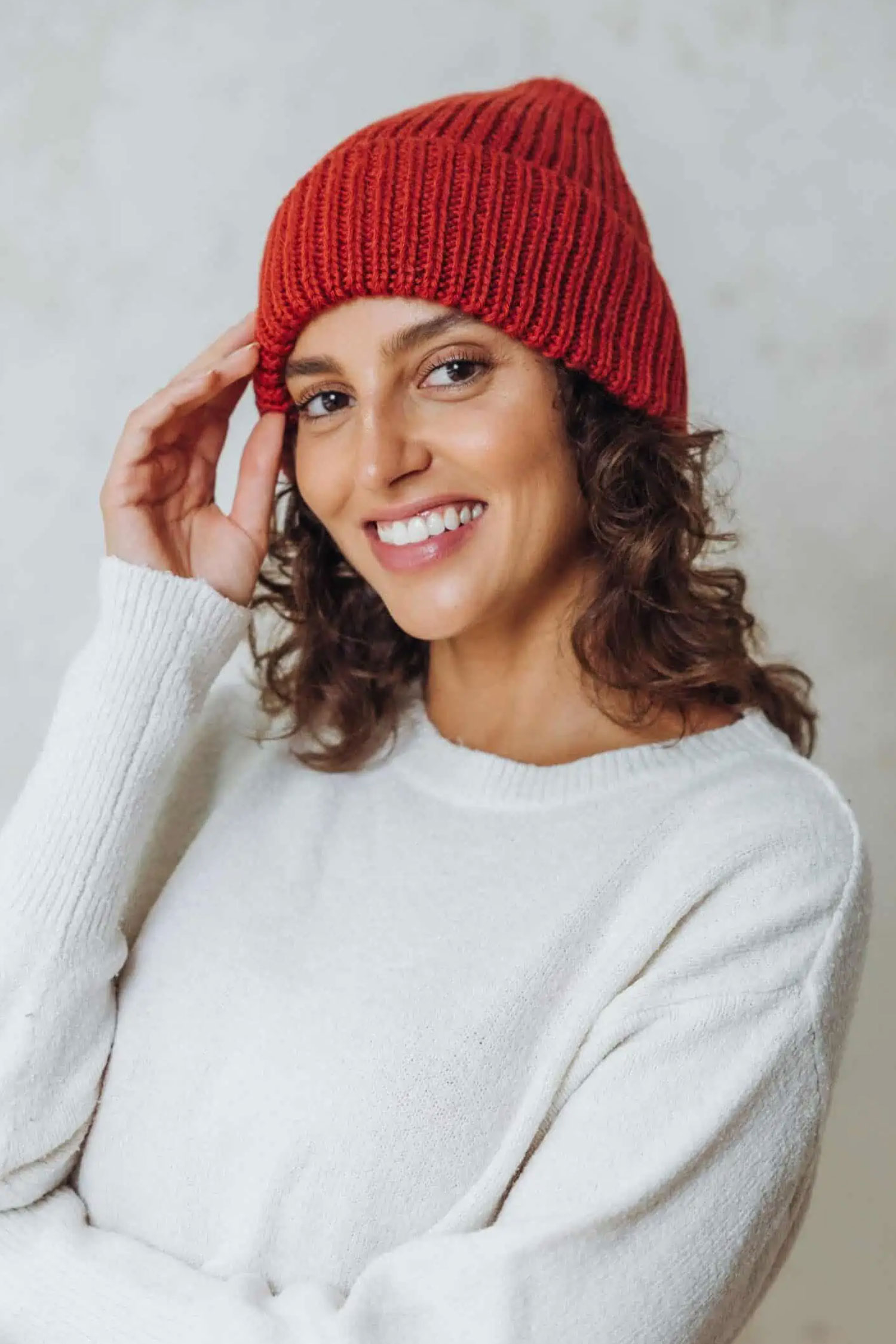 The beanie made of 100% very soft and warm baby alpaca-wool that is not itchy at all. The yarn is roughened and therefore very light and fluffy. Moreover, baby alpaca wool is particularly breathable, dirt and odour resistant, plus it is 100% biodegradable.