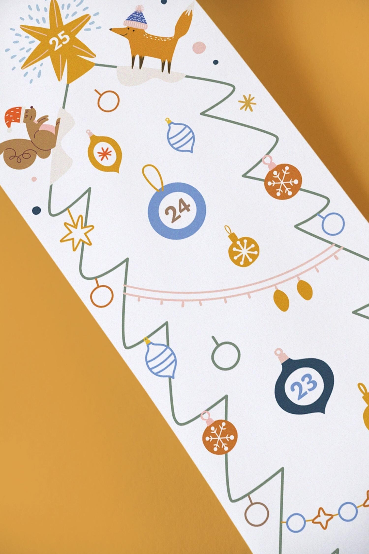 Ein lustiger, 2 Meter langer Weihnachtsbaum! Male alle Illustrationen aus und denke dir bis Weihnachten jeden Tag neue Geschichten aus!