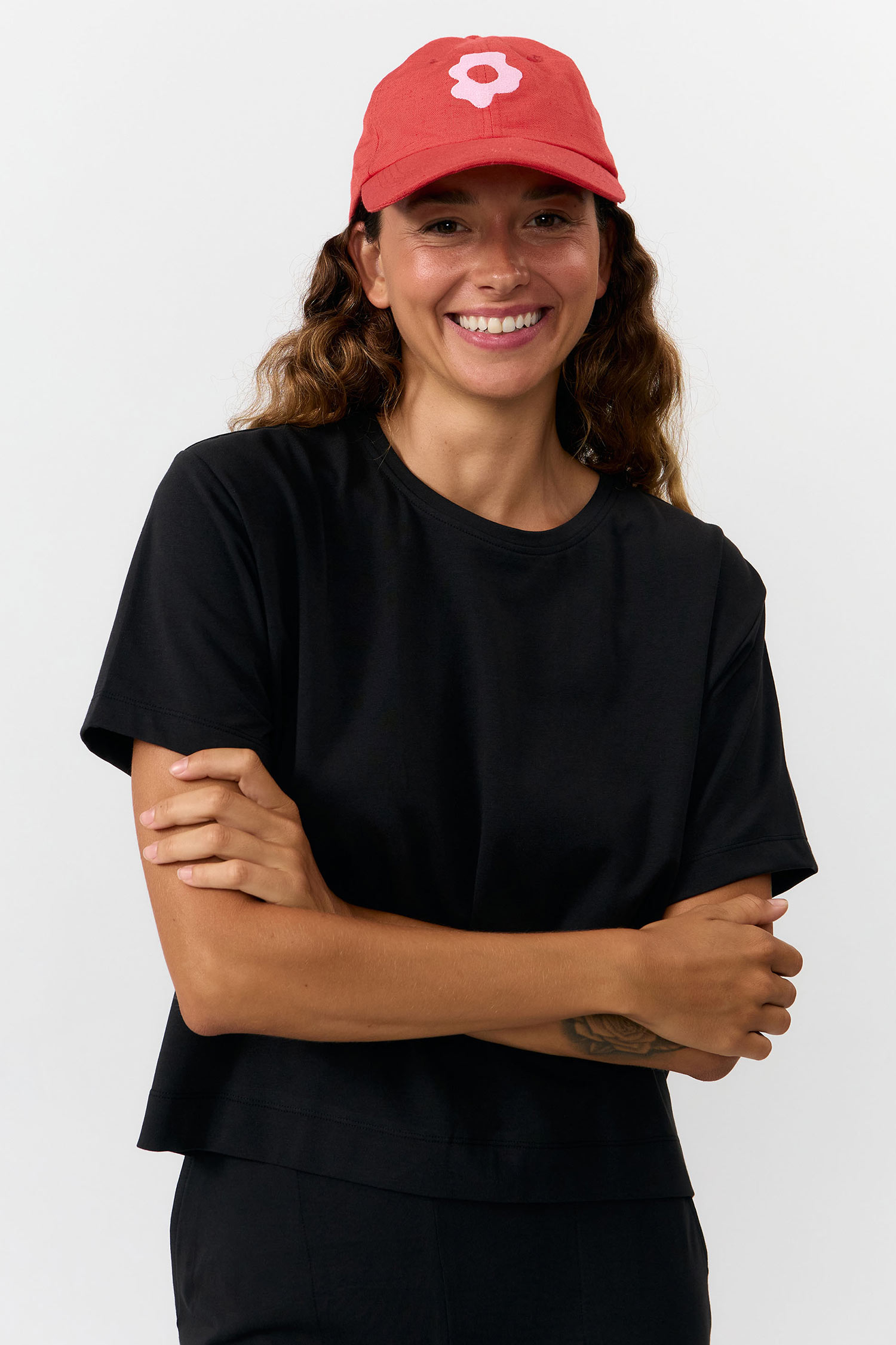Strukturierte Baseballkappe mit vorgebogenem Schirm und verstellbarem Riemenverschluss für einen sicheren Halt.